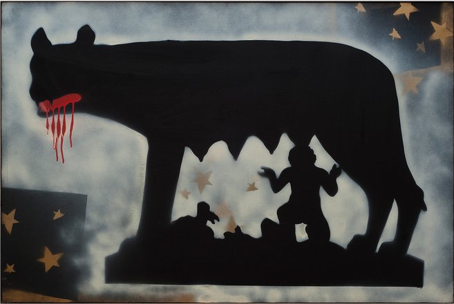 smalto e spray su tela